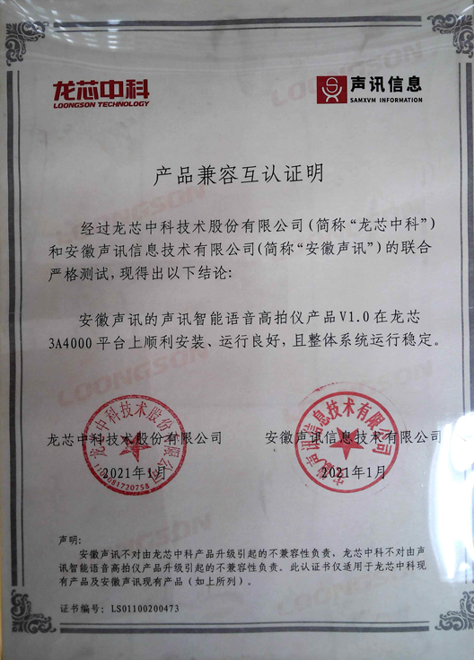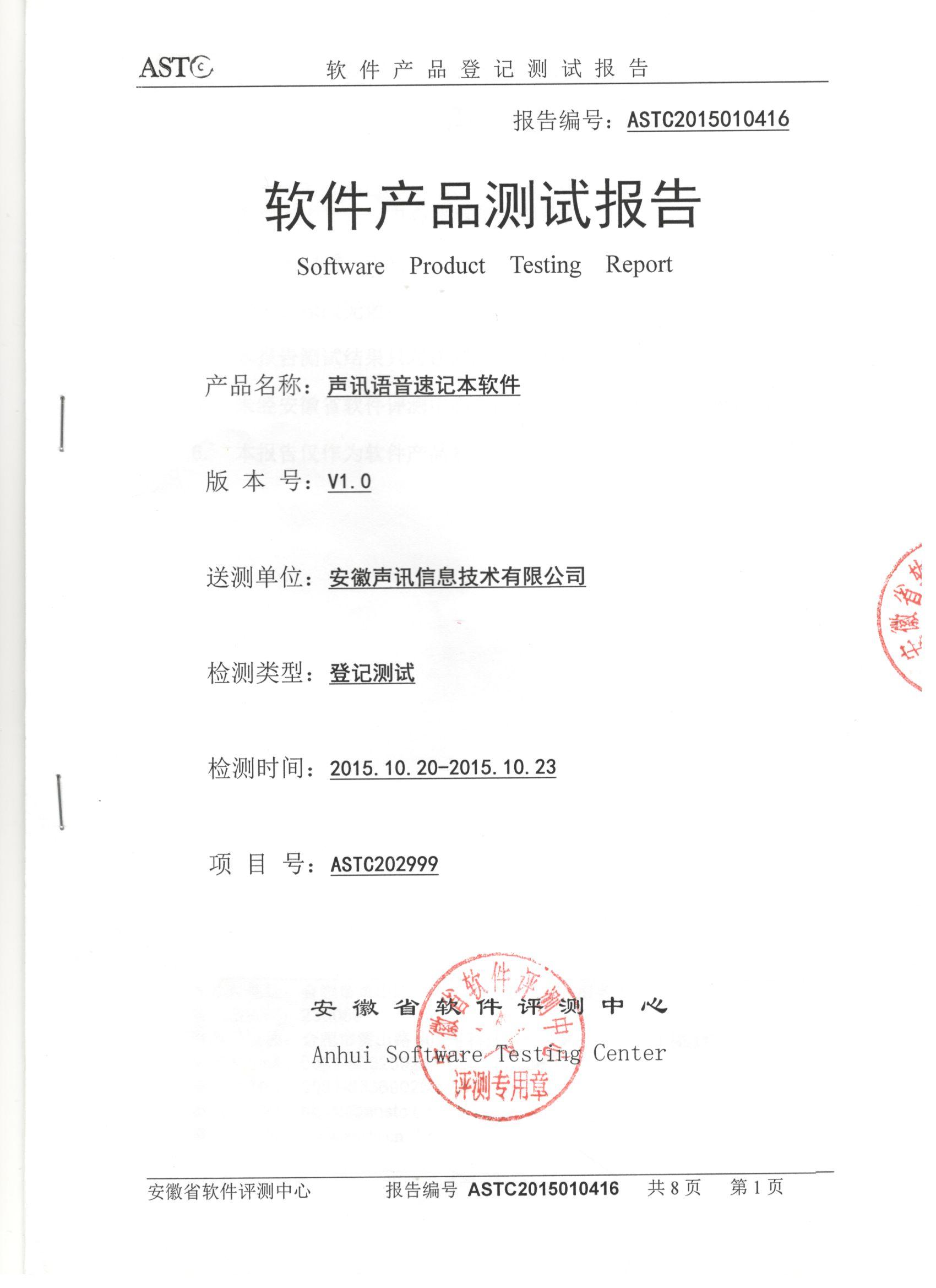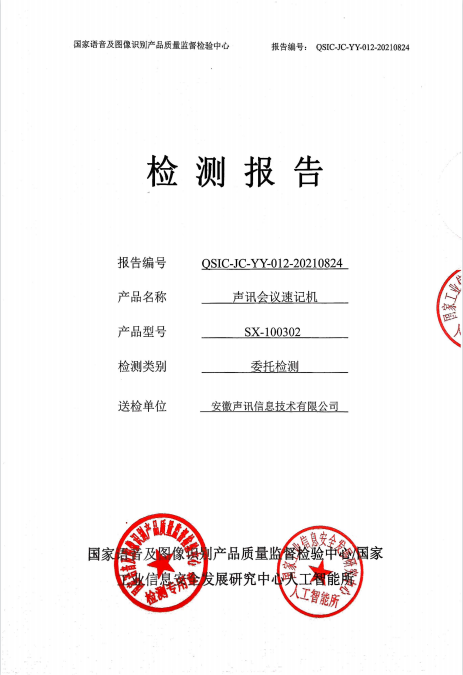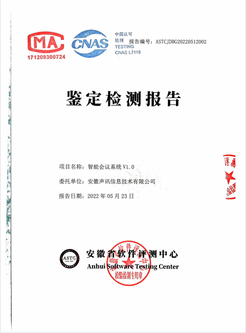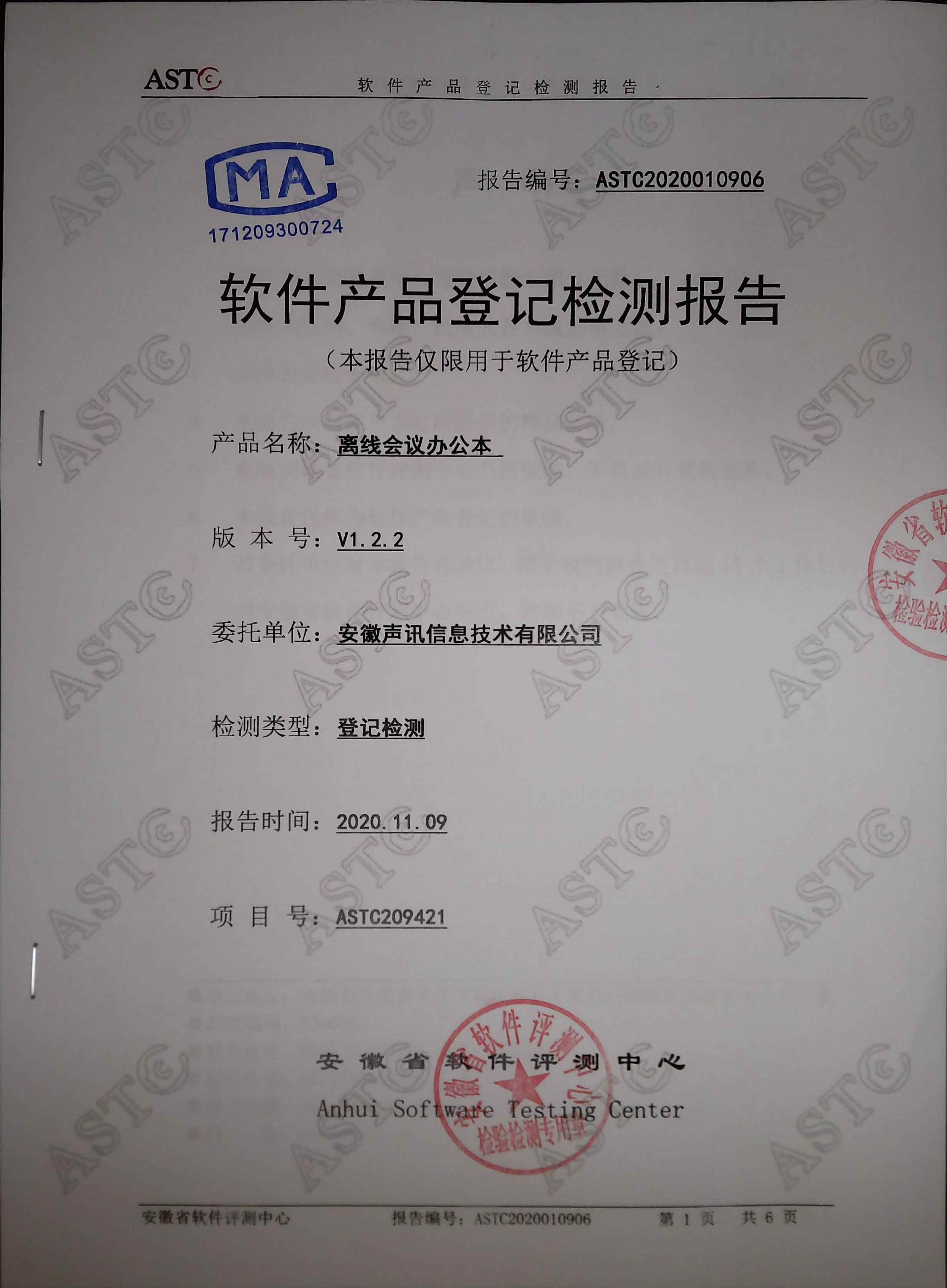 瀏覽 ![]() 軟件產(chǎn)品登記測試報告聲訊智能無紙化會議軟件V1.0 瀏覽 ![]() 聲訊語音速記本軟件軟件產(chǎn)品測試報告 瀏覽 ![]() 離線會議辦公本V1.2.2安徽省軟件評測中心測試證書 瀏覽 ![]() 離線會議辦公本軟件產(chǎn)品登記檢測報告 瀏覽 ![]() 聲訊會議速記機檢測報告 瀏覽 ![]() 智能會議系統(tǒng)V1.0鑒定檢測報告 瀏覽 ![]() 智能語音產(chǎn)品測評證書聲訊會議速記機(型號/版本:SX-100302) 瀏覽 ![]() 聲訊智能語音高拍儀產(chǎn)品V1.0在龍芯3A4000平臺兼容認證 瀏覽 ![]() 基于圖像和語音識別的課本指讀學(xué)習(xí)機系統(tǒng)V1. 0檢測證書 瀏覽 ![]() 基于RTOS系統(tǒng)的智能語音翻譯筆系統(tǒng)V1.0檢測證書 瀏覽 ![]() 20210126聲訊智能語音高拍儀與龍芯兆芯認證統(tǒng)信軟件認證產(chǎn)品 瀏覽 ![]() 20210202聲訊智能語音高拍儀V1.0與麒麟軟件兼容認證 瀏覽