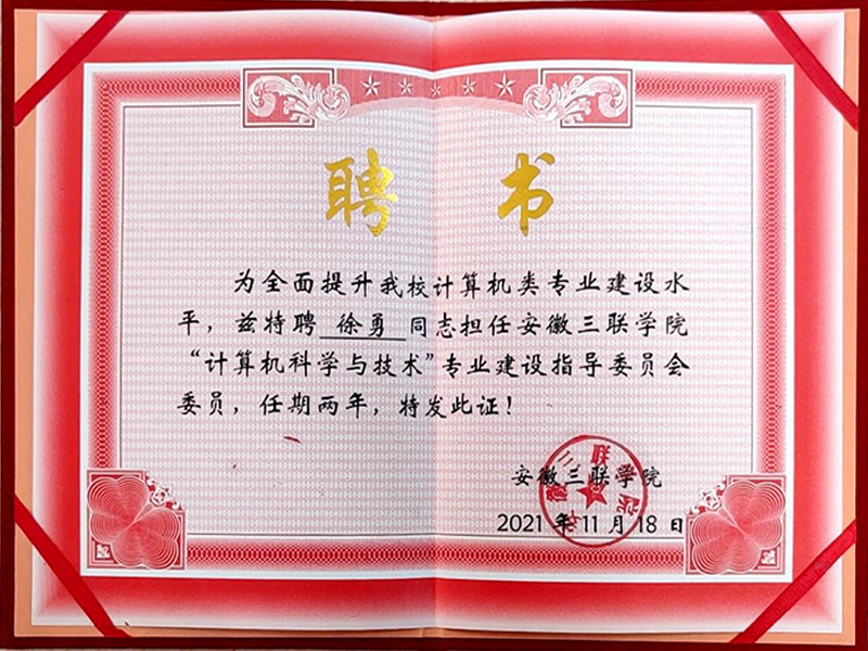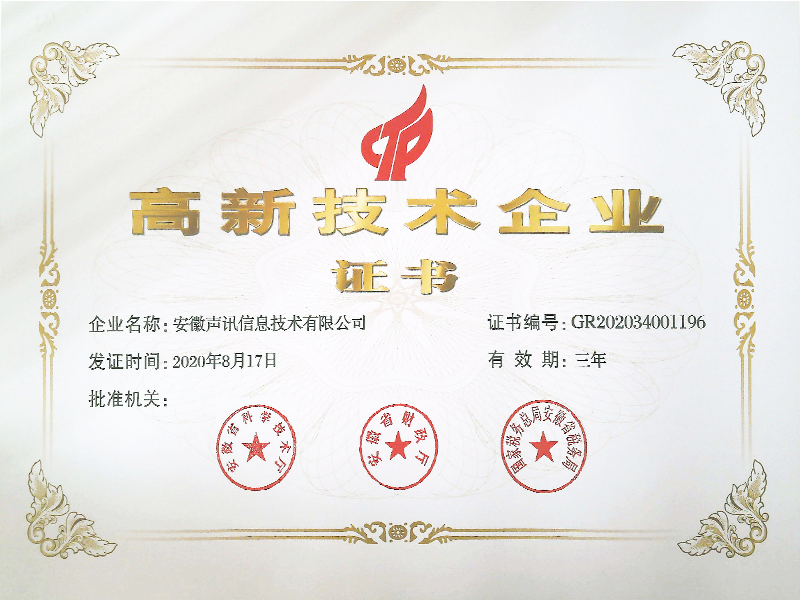 瀏覽 ![]() 葛阿平認(rèn)定為合肥市E類重點(diǎn)產(chǎn)業(yè)企業(yè)高層次人才 瀏覽 ![]() 徐勇認(rèn)定為合肥市E類重點(diǎn)產(chǎn)業(yè)企業(yè)高層次人才 瀏覽 ![]() 安徽三聯(lián)學(xué)院特聘安徽聲訊葛阿平擔(dān)任軟件工程專業(yè)建設(shè)指導(dǎo)委員會(huì)委員 瀏覽 ![]() 安徽三聯(lián)學(xué)院特聘安徽聲訊徐勇?lián)诬浖こ虒I(yè)建設(shè)指導(dǎo)委員會(huì)委員 瀏覽 ![]() 安徽三聯(lián)學(xué)院特聘安徽聲訊虞焰興擔(dān)任軟件工程專業(yè)建設(shè)指導(dǎo)委員會(huì)委員 瀏覽 ![]() 安徽省軟件協(xié)會(huì)會(huì)員證書(shū) 瀏覽 ![]() 科技型中小企業(yè)202104 瀏覽 ![]() 虞焰興認(rèn)定為合肥市E類重點(diǎn)產(chǎn)業(yè)企業(yè)高層次人才 瀏覽 ![]() 立信企業(yè) 瀏覽 ![]() 成為安徽省軟行業(yè)協(xié)會(huì)會(huì)員單位20211231 瀏覽 ![]() 安徽聲訊成為中國(guó)語(yǔ)音產(chǎn)業(yè)聯(lián)盟會(huì)員20211218 瀏覽 ![]() 高新技術(shù)企業(yè)證書(shū)20200817 瀏覽