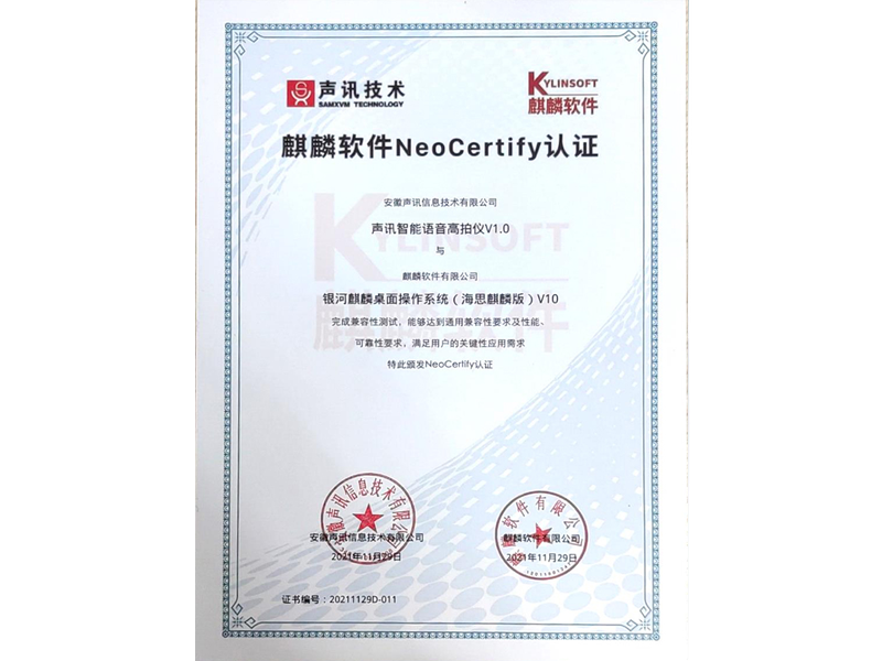 銀河麒麟桌面操作系統(tǒng)(海思麒麟版)V10NeoCertify認證202111