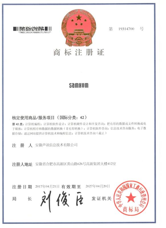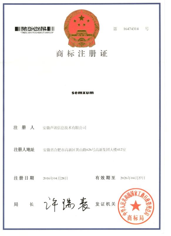 瀏覽 ![]() 8SX商標(biāo)注冊(cè)證20190507 瀏覽 ![]() 7SX商標(biāo)注冊(cè)證20190228 瀏覽 ![]() 6SX商標(biāo)注冊(cè)證20190228 瀏覽 ![]() 5SX商標(biāo)注冊(cè)證20181121-27639164 瀏覽 ![]() 4SAMXVM商標(biāo)注冊(cè)證20170421-20270420 瀏覽 ![]() 3SAMXVM商標(biāo)注冊(cè)證20170421-20270420 (2) 瀏覽 ![]() 2速記家商標(biāo)注冊(cè)證20160821-20260820 瀏覽 ![]() 1SEMXUM商標(biāo)注冊(cè)證20160428-20260428 瀏覽