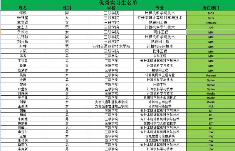 2021年度安徽聲訊信息技術(shù)有限公司優(yōu)秀實(shí)習(xí)生公示日期:2022.05.10 瀏覽次數(shù):3067 次按照公司實(shí)習(xí)生管理?xiàng)l例和大學(xué)生實(shí)習(xí)基地等規(guī)定,經(jīng)過各部門評(píng)審和公司審核,何欣等31位同學(xué)被評(píng)為安徽聲訊信息技術(shù)有限公司2021年度優(yōu)秀實(shí)習(xí)生予以公示。公示期限為2022年5月10日—2022年5月18日。如對(duì)公示的人員持有異議,請(qǐng)以真實(shí)身份向公司研發(fā)中心反映. 聯(lián)系電話;0551-63877748